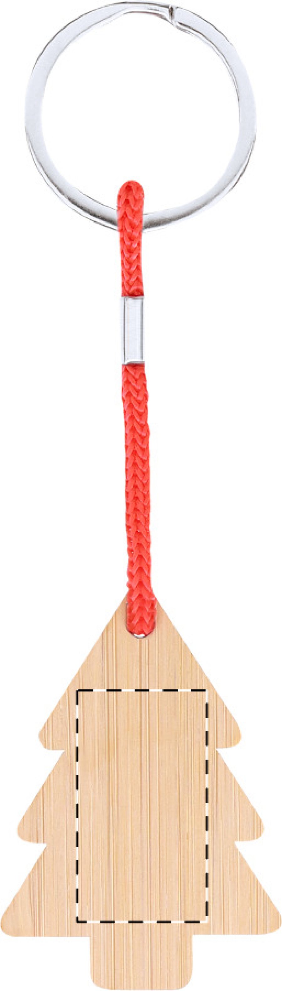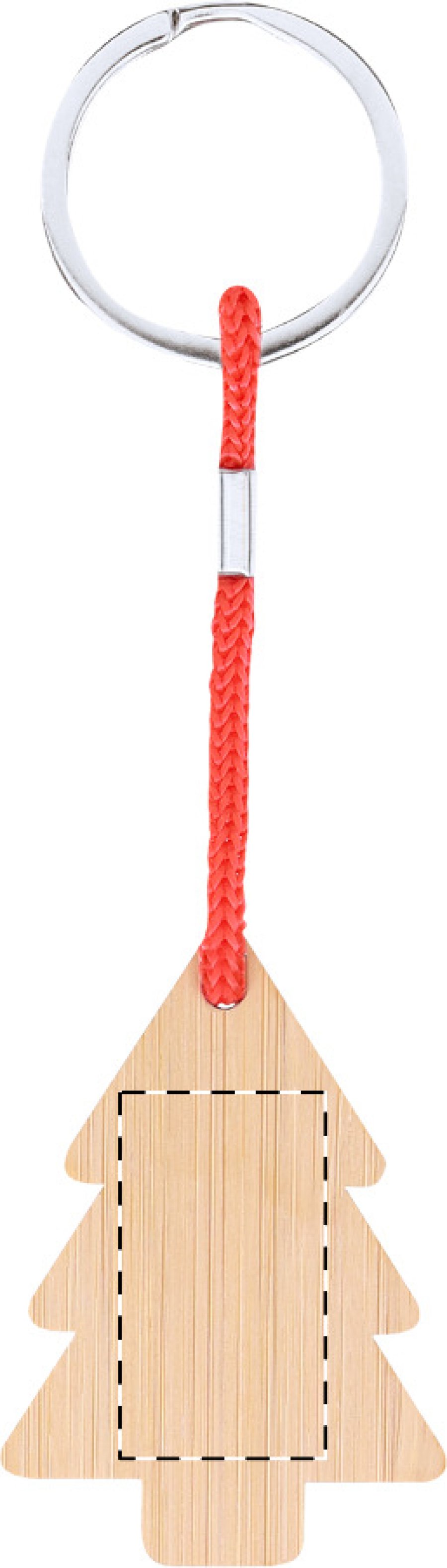 Vánoční přívěšek na klíče z bambusové překližky s červeným provázkem a kovovým kroužkem.