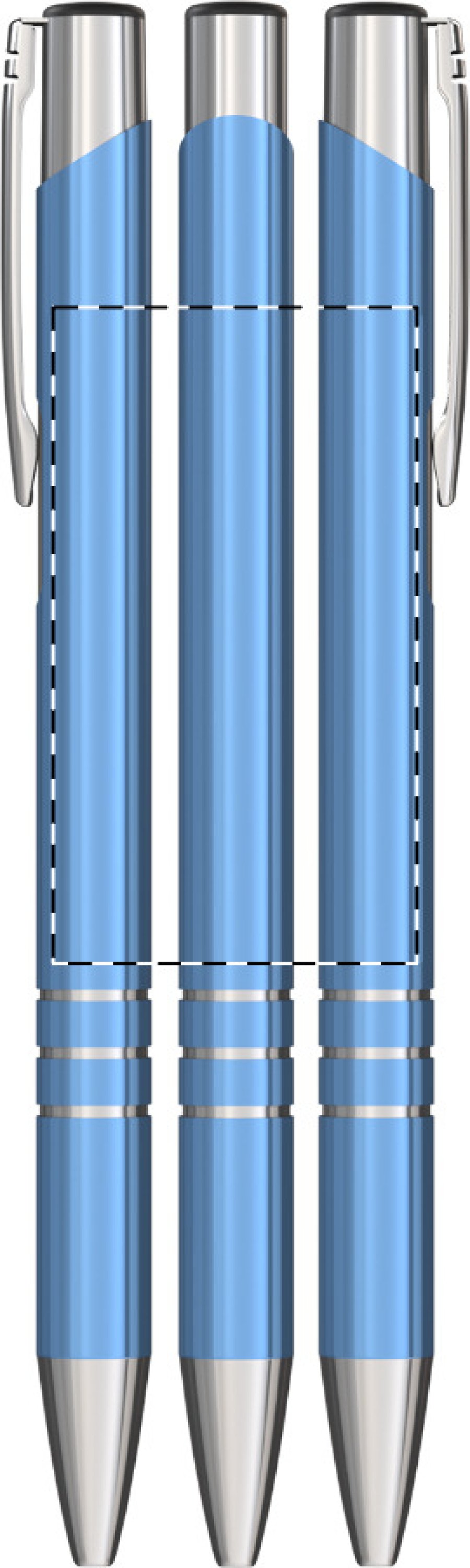 Hliníkové kuličkové pero s modrou náplní.