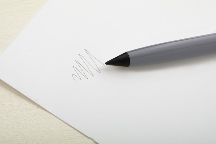 Pero bez inkoustu s dlouhou životností z recyklovaného hliníku s dotykovým perem a hrotem z kovové slitiny, který oxiduje papír. Toto pero píše podobně jako tužka a je také stíratelné. Včetně gumy na vnitřní straně dotykového stylusu.