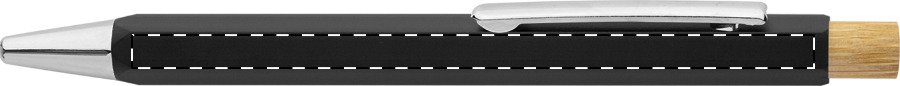 Šestihranné kuličkové pero z recyklovaného hliníku s bambusovým tlačítkem a chromovanými částmi. S modrou náplní.