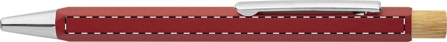Šestihranné kuličkové pero z recyklovaného hliníku s bambusovým tlačítkem a chromovanými částmi. S modrou náplní.
