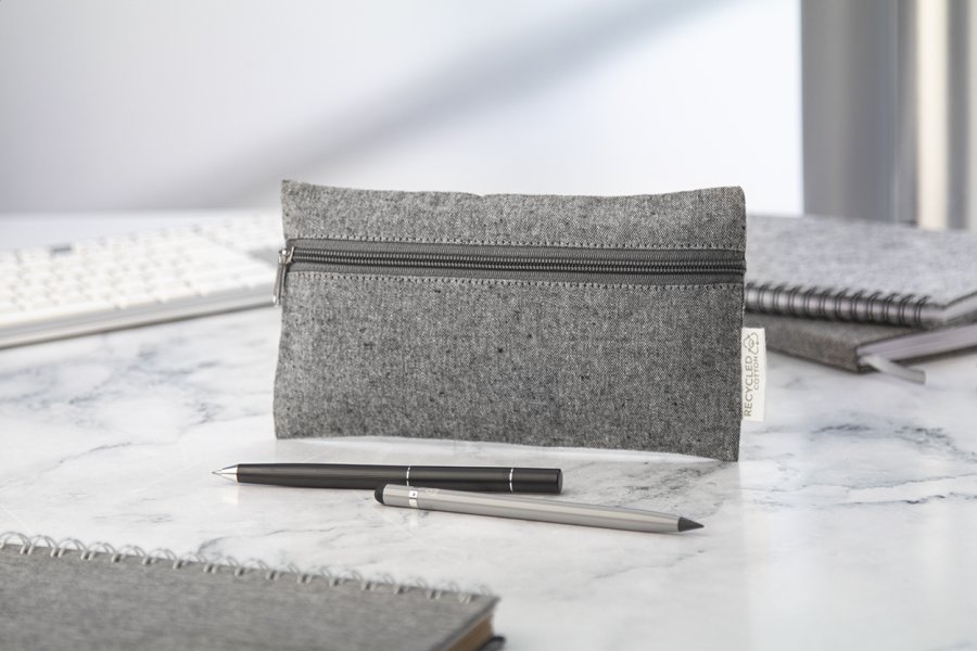 Pouzdro na pera z recyklované bavlny na zip s výrazným štítkem. 100% recyklovaná bavlna.