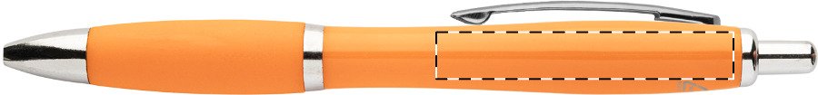 Kuličkové pero z recyklovaného ABS plastu s úchopem v odpovídající barvě a chromovanými částmi. S modrou náplní.