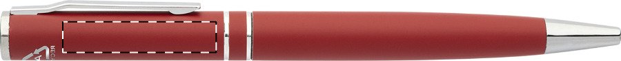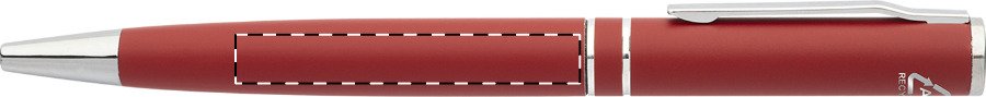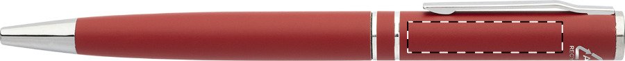 Kuličkové pero z recyklovaného hliníku s chromovanými částmi a kroužky. V černé dárkové krabičce. S modrou náplní.