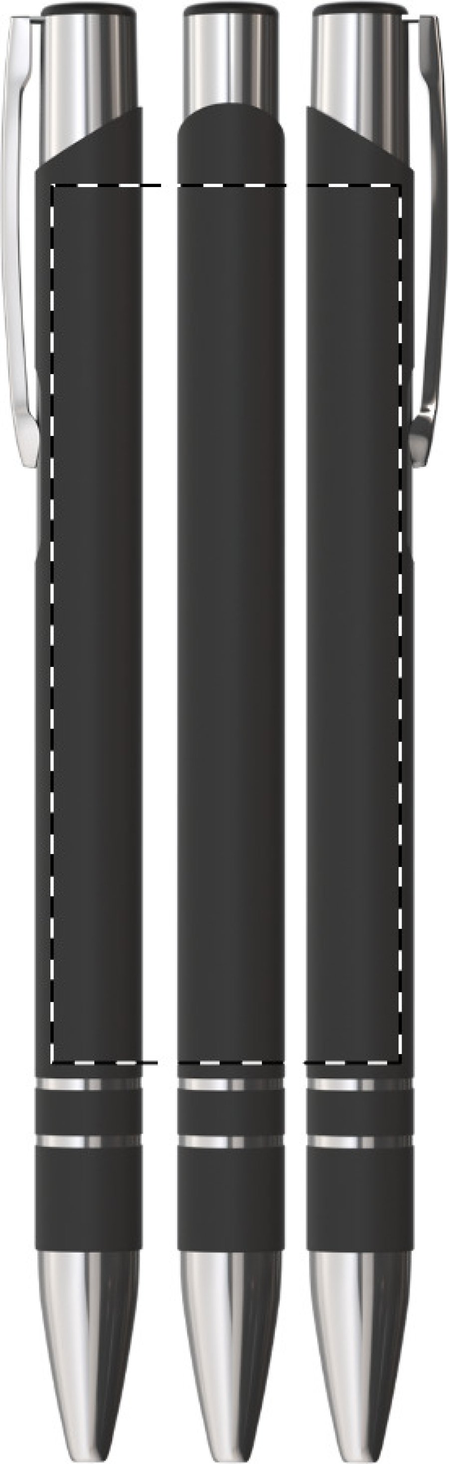 Hliníkové kuličkové pero s pogumovaným povrchem a modrou náplní. Speciální povrch pro laser stříbrného loga.