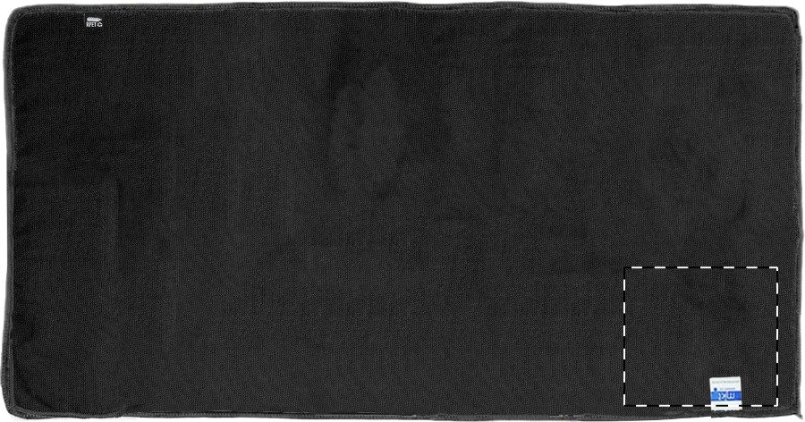 Sportovní ručník z mikrovlákna v přenosném pouzdře RPET s výrazným štítkem RPET. Polyester RPET, 160 g/m².