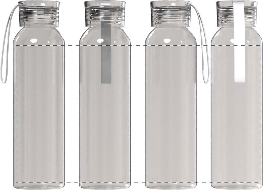 Láhev z recyklovaného skla s barevně odpovídajícím PP víčkem a silikonovým popruhem, 500 ml. Nevhodné pro sycené nápoje.