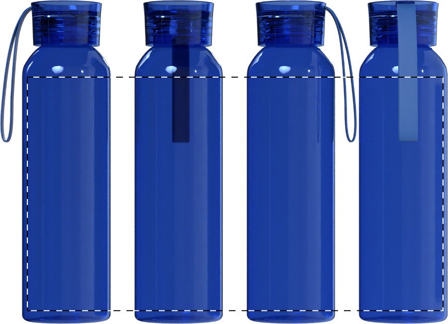 Láhev z recyklovaného skla s barevně odpovídajícím PP víčkem a silikonovým popruhem, 500 ml. Nevhodné pro sycené nápoje.