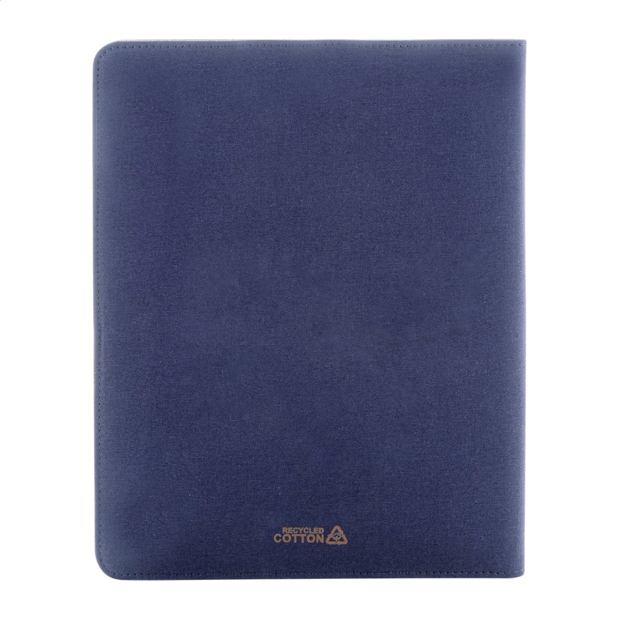 Složka na dokumenty A4 z recyklovaného plátna a recyklované umělé kůže s několika předními a vnitřními kapsami. S blokem na 20 linkovaných listů z recyklovaného papíru. 70 % recyklované bavlny a 30 % RPET polyesteru.