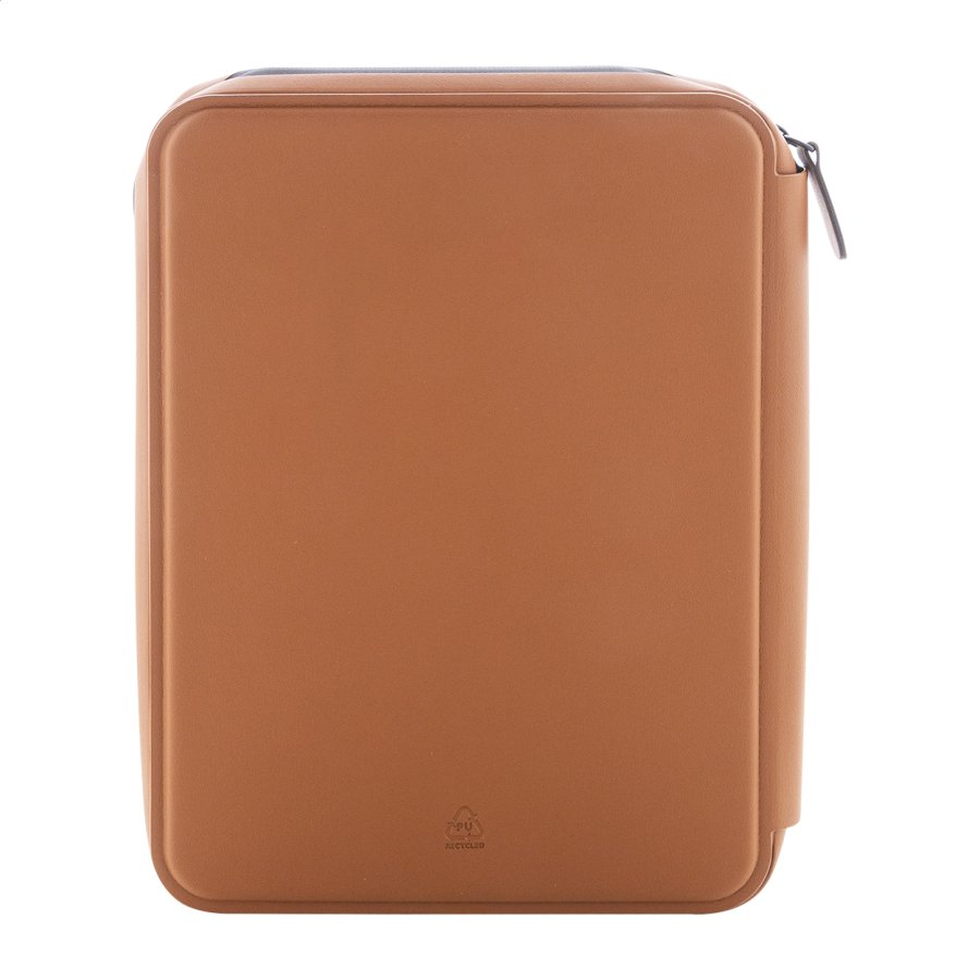 Luxusní složka na dokumenty A5 na zip z recyklované umělé kůže s 64 linkovanými listy a blokem z recyklovaného papíru. S několika vnitřními kapsami na karty a dokumenty.