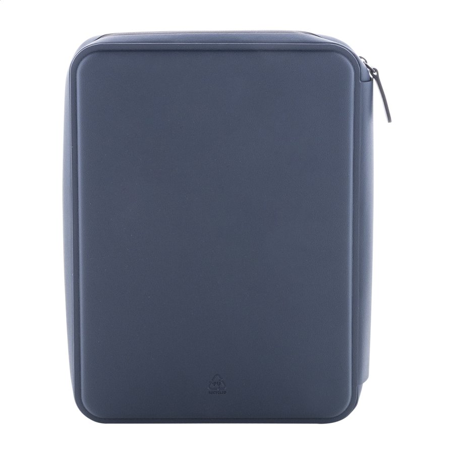 Luxusní složka na dokumenty A5 na zip z recyklované umělé kůže s 64 linkovanými listy a blokem z recyklovaného papíru. S několika vnitřními kapsami na karty a dokumenty.