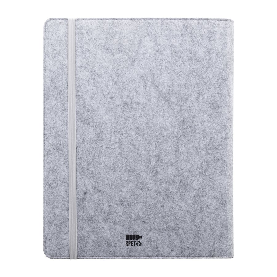 Plstěná sloha A4 na dokumenty z RPET s předními a několika vnitřními kapsami s organizérem. S 20 linkovanými listy poznámkového bloku z recyklovaného papíru.