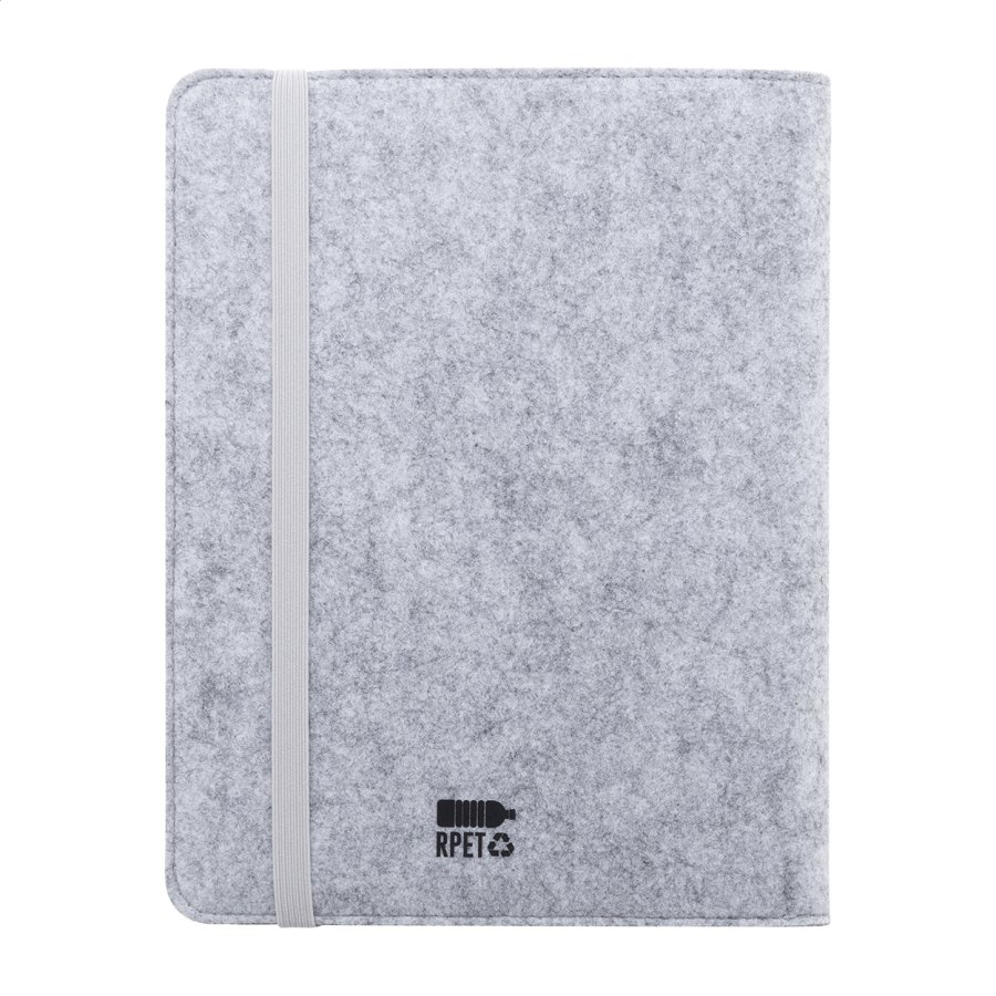 Plstěná sloha A5 na dokumenty z RPET formátu A5 s předními a několika vnitřními kapsami s organizérem. S 20 linkovanými listy poznámkového bloku z recyklovaného papíru.