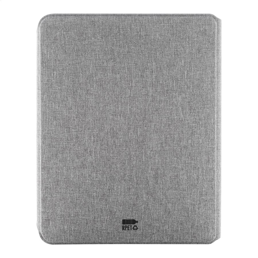 Složka na dokumenty A4 z RPET polyesteru s několika vnitřními kapsami a magnetickým zapínáním s detaily z ořechového dřeva. S linkovaným blokem z recyklovaného papíru s 20 listy.
