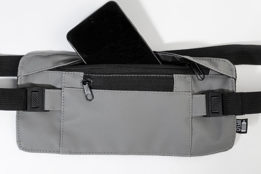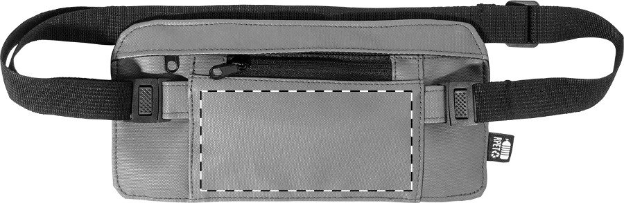 Úzká ledvinka z RPET s přední stranou potaženou PU, přihrádkou na zip a přední kapsou a nastavitelným popruhem. Polyester 600D RPET s PU zátěrem a výrazným štítkem RPET.
