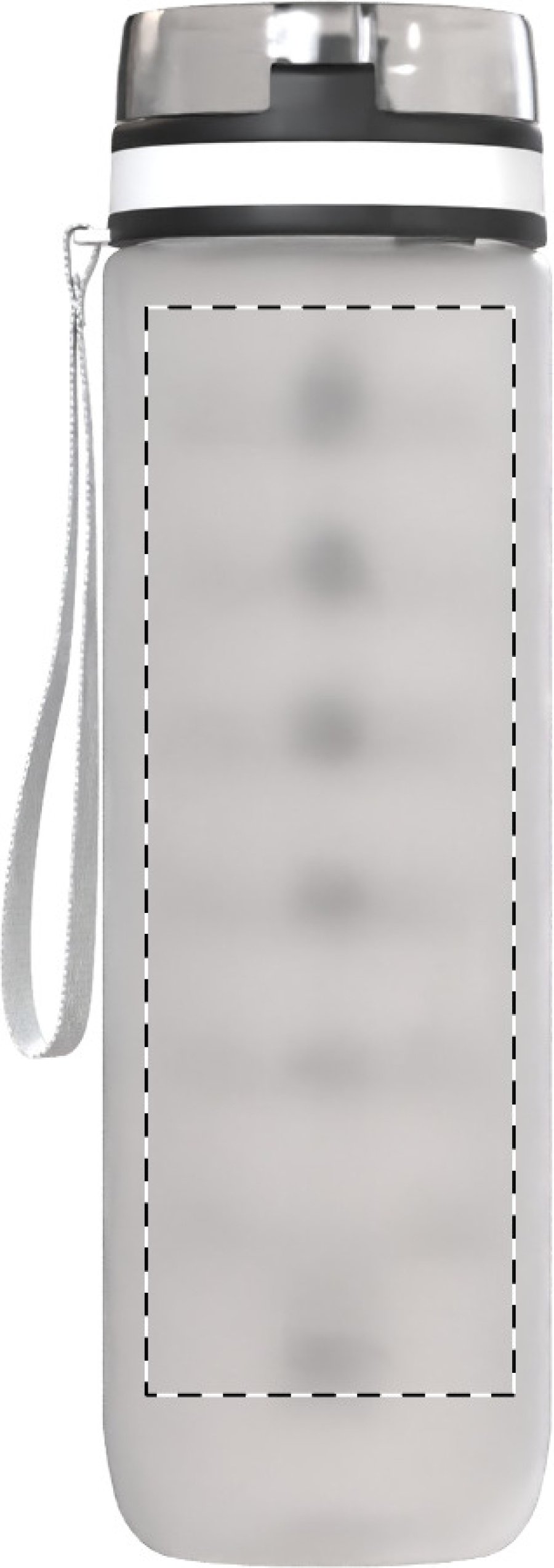 Sportovní láhev z matného RPET s motivačním objemovým a časovým značením, s automaticky otevíratelným odklápěcím víčkem s bezpečnostním zámkem a poutkem na nošení. 1000 ml. Bez BPA. Nevhodné pro sycené nápoje.
