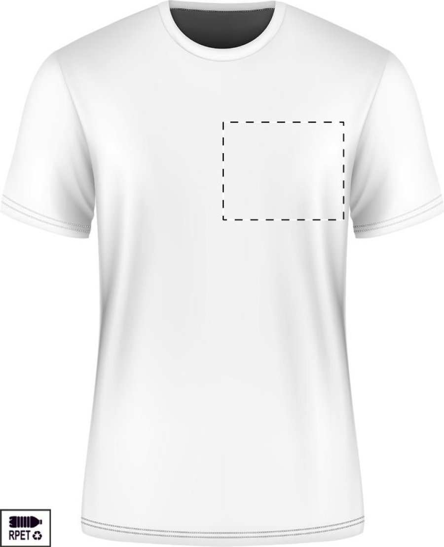 Sportovní prodyšné tričko ze 100% RPET polyesteru, 135 g/m², s etiketou s označením RPET.