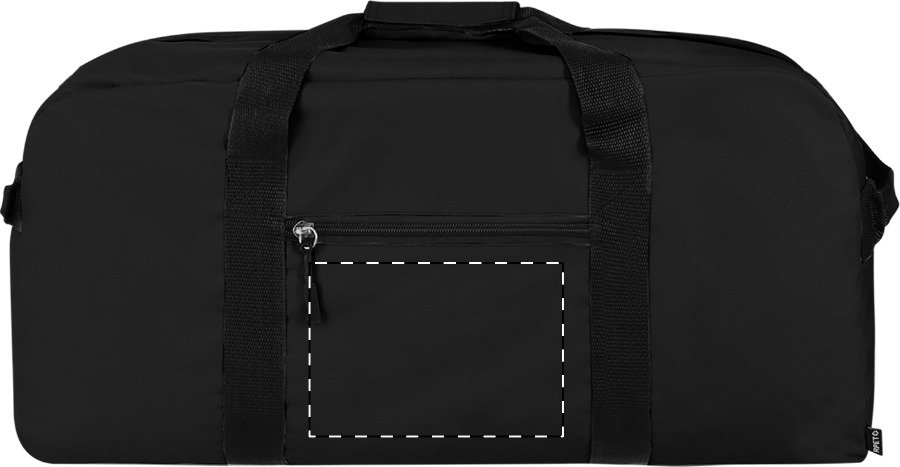 Sportovní taška RPET s hlavními přihrádkami na zip a přední kapsou, nastavitelný ramenní popruh. Polyester 600D RPET, s výrazným štítkem RPET.
