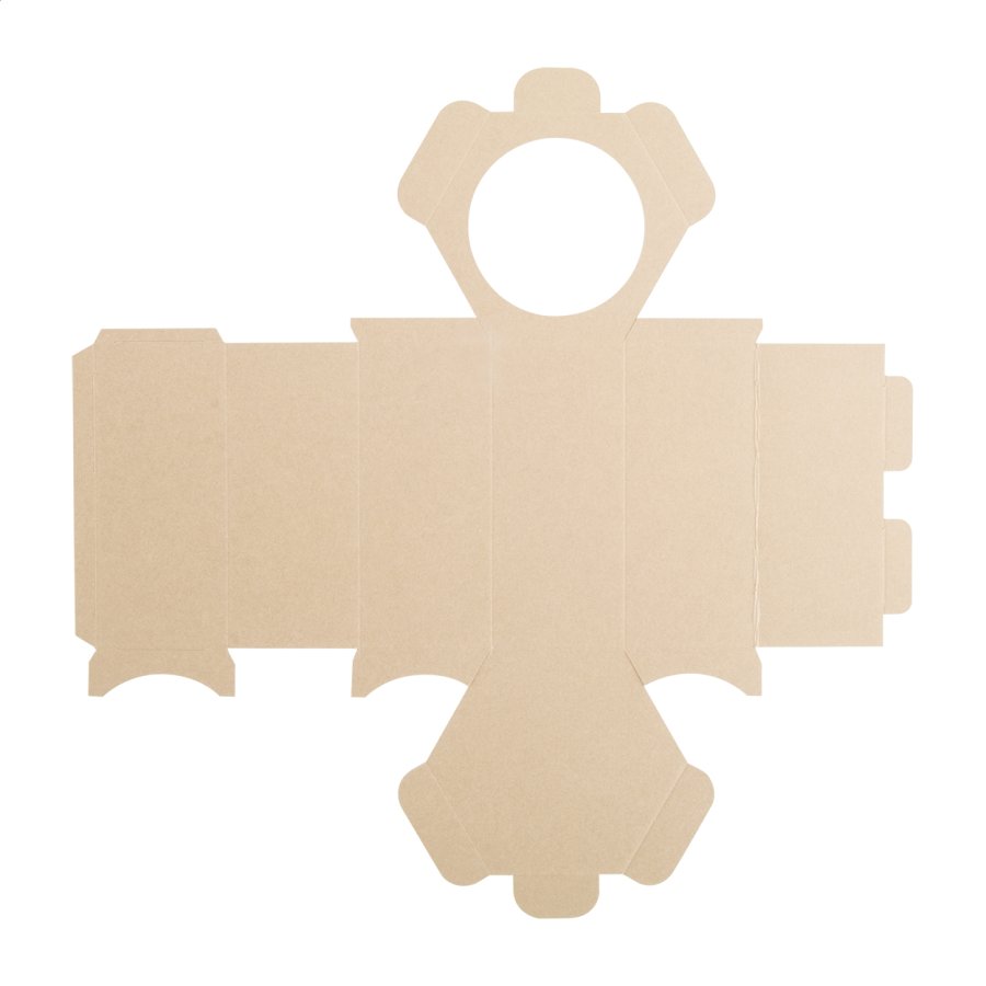 Na zakázku vyrobený držák na pero z kraftového papíru ve tvaru šestiúhelníku.