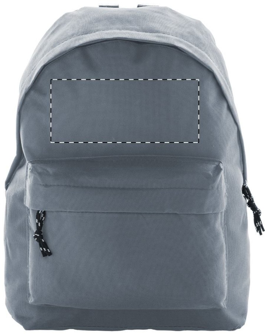 Batoh s jednou přední kapsou a vyztuženými zády a ramenními popruhy. Polyester 600D.