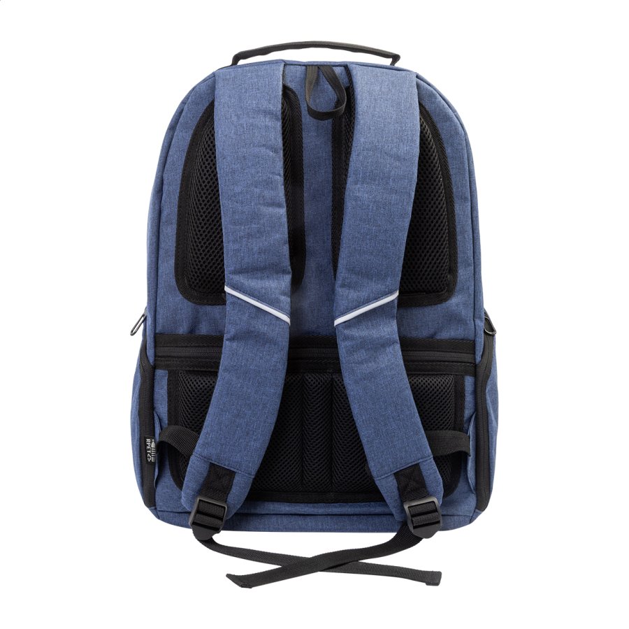 Batoh z RPET s přihrádkami na zip, 2 předními kapsami na zip, bočními kapsami na zip a polstrovanou přihrádkou na notebook (15"). S polstrovanými zády a ramenními popruhy, kapsou s ochranou proti krádeži a popruhem na kufr. Z polyesteru 300D RPET s výrazným štítkem RPET.