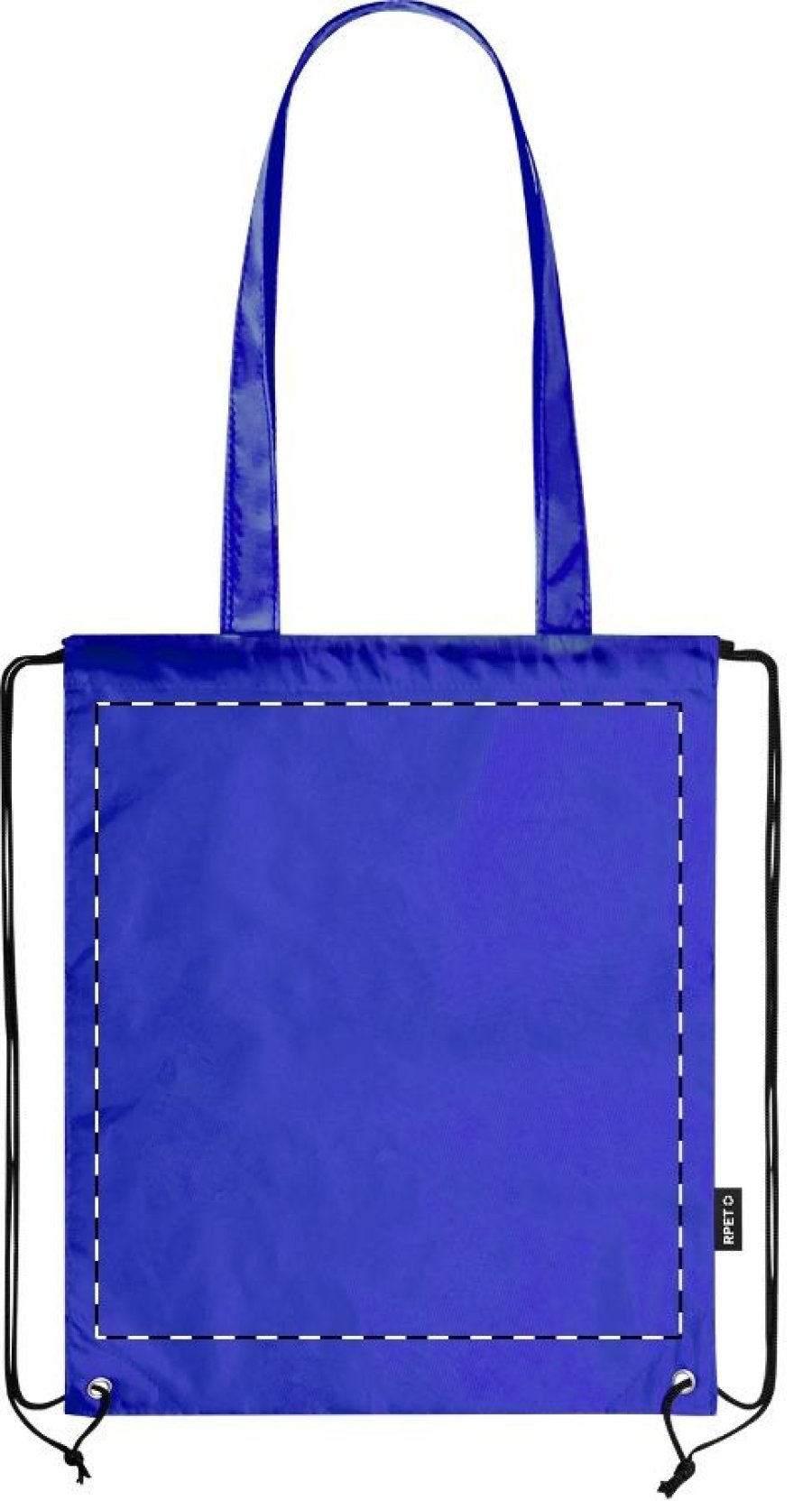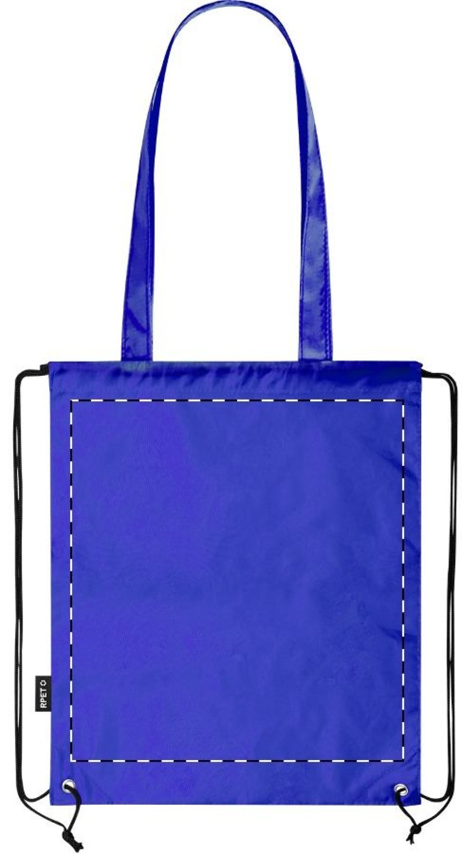 RPET polyesterová taška se stahovací šňůrkou s dlouhým uchem. Lze použít i jako nákupní tašku. S výrazným štítkem RPET.