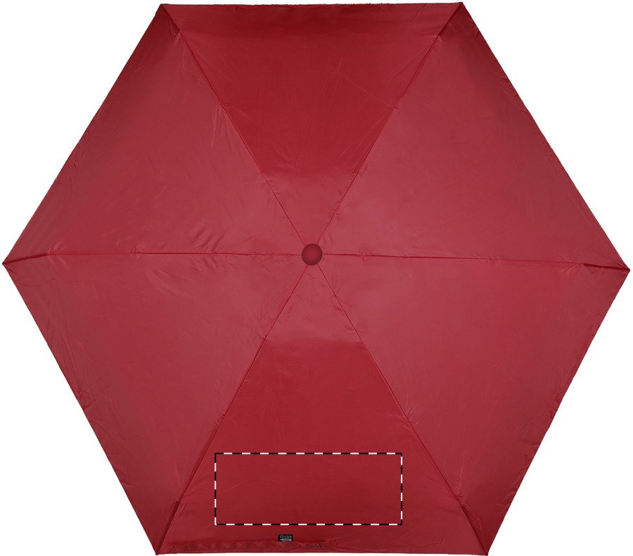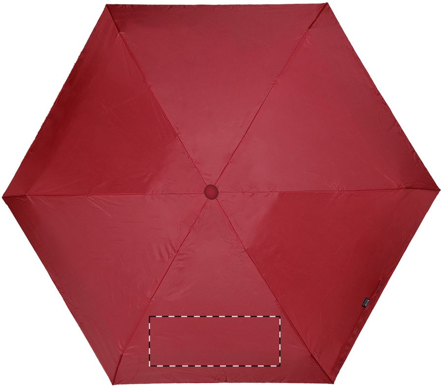 Manuální, větruodolný 3-skládací mini deštník se 6 panely v barevně sladěném pouzdře a tvrdým pouzdrem z EVA na zip. S kovovým rámem, žebry z sklolaminátu a kompaktní rukojetí s poutkem na ruku. 190T RPET pongee s charakteristickým RPET štítkem.