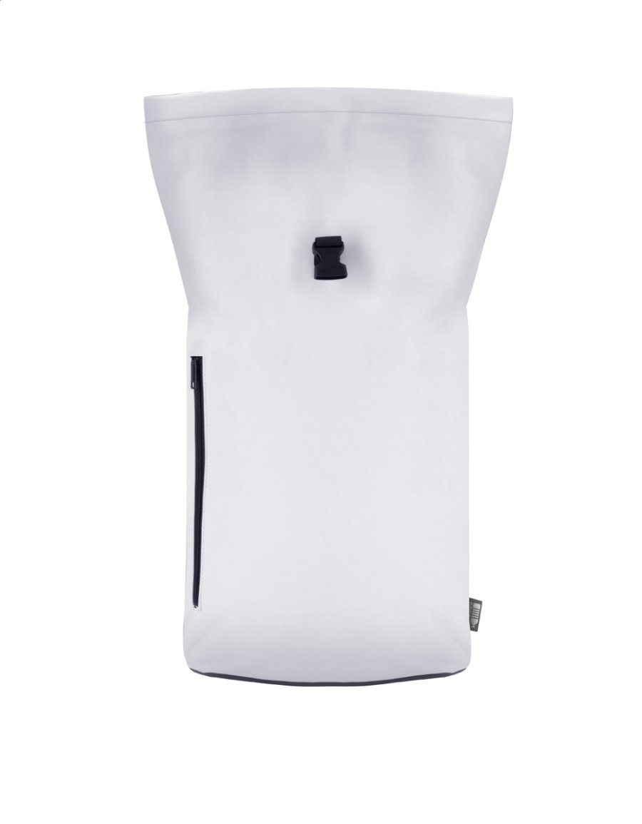 Vodotěsný, měkký rolovací batoh z recyklované PU kůže se zapínáním na přezku, přední kapsou na zip a polstrovanou přihrádkou na notebook (15"). S polstrovanými zády a ramenními popruhy. S výrazným recyklovaným PU štítkem.
