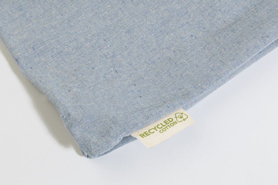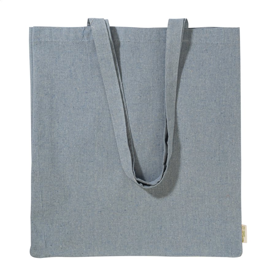 Opakovaně použitelná nákupní taška ze 100% recyklované bavlny s dlouhými uchy a výrazným štítkem z recyklované bavlny, 140 g/m².