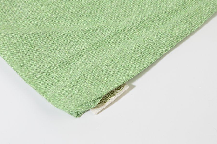 Opakovaně použitelná nákupní taška ze 100% recyklované bavlny s dlouhými uchy a výrazným štítkem z recyklované bavlny, 140 g/m².