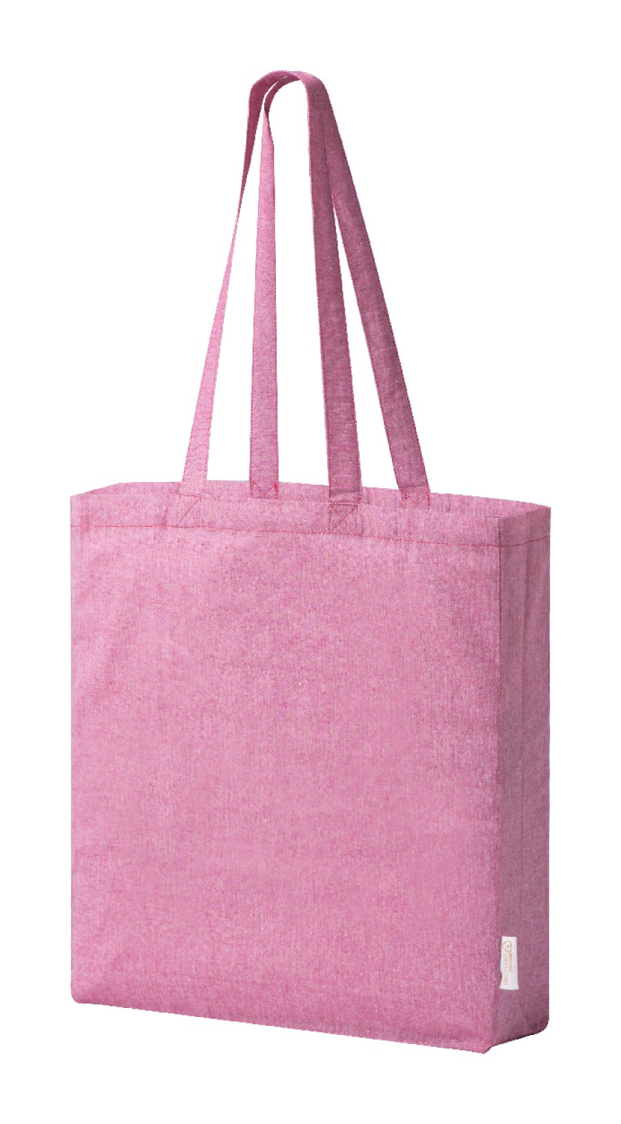 Nákupní taška z recyklované bavlny s klínem, dlouhými uchy a výrazným štítkem z recyklované bavlny. 100% recyklovaná bavlna, 140 g/m².