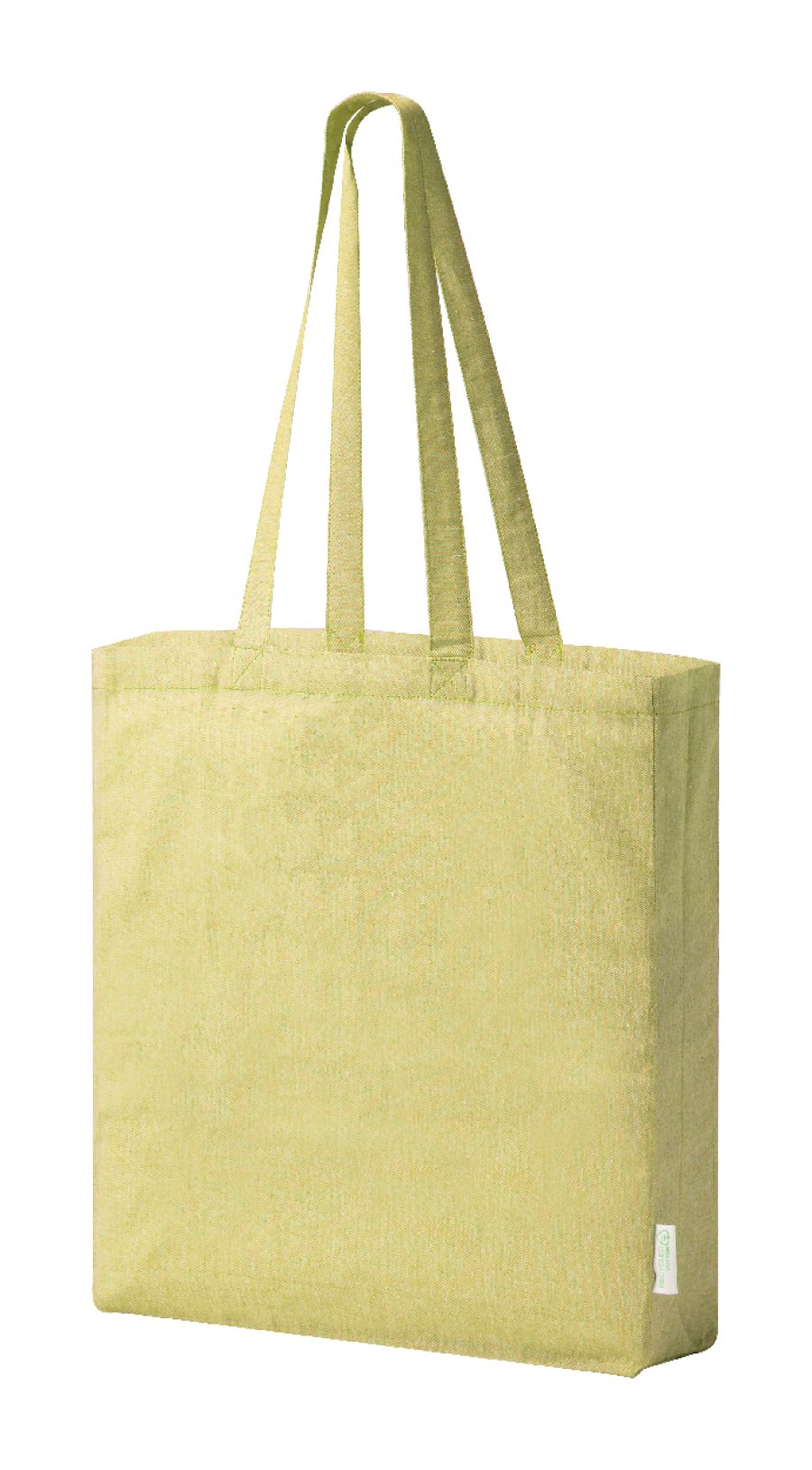 Nákupní taška z recyklované bavlny s klínem, dlouhými uchy a výrazným štítkem z recyklované bavlny. 100% recyklovaná bavlna, 140 g/m².