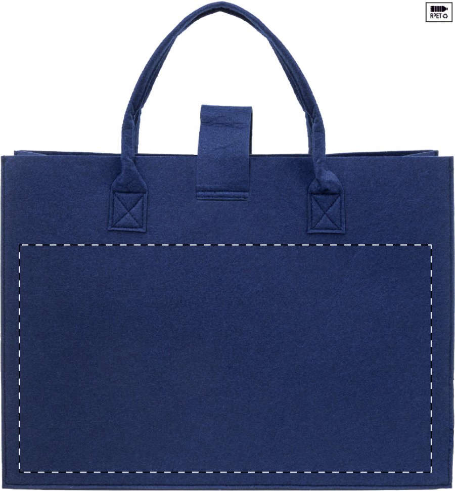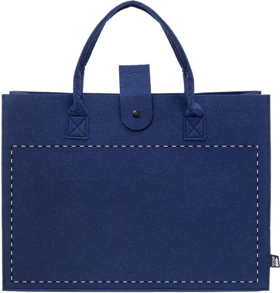 Nákupní taška z RPET plsti s klínkem, zapínáním na knoflíky a krátkými uchy. S výraznou etiketou z RPET.