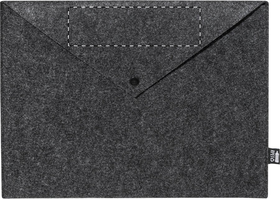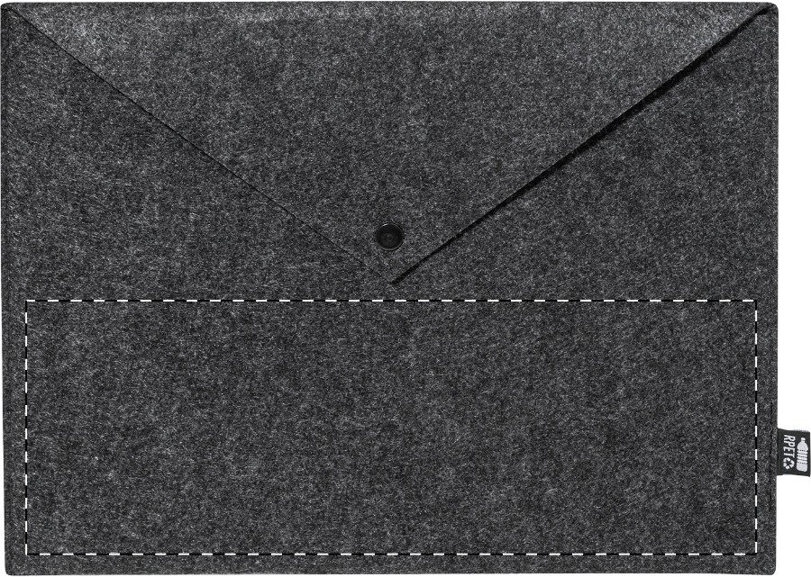 Taška na dokumenty nebo pouzdro na notebook z RPET plsti s knoflíkovým zapínáním. Vhodné pro notebooky do 13". S výrazným štítkem RPET.
