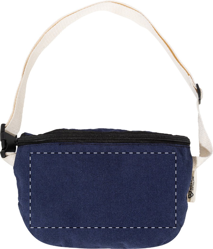 Ledvinka z recyklovaného plátna s přihrádkou na zip a nastavitelným popruhem. 70 % recyklované bavlny a 30 % recyklovaného polyesteru. S výraznou etiketou z recyklované bavlny.