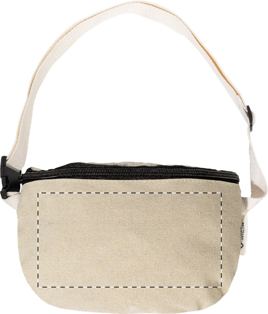 Ledvinka z recyklovaného plátna s přihrádkou na zip a nastavitelným popruhem. 70 % recyklované bavlny a 30 % recyklovaného polyesteru. S výraznou etiketou z recyklované bavlny.