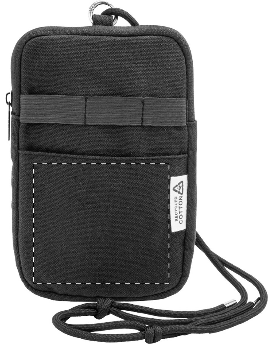 Crossbody taška na mobilní telefon z recyklovaného plátna s hlavní přihrádkou na zip, přední kapsou a nastavitelnou šňůrkou z polyesteru RPET. Materiál: 70 % recyklovaná bavlna a 30 % polyester RPET. S výrazným štítkem z recyklované bavlny.