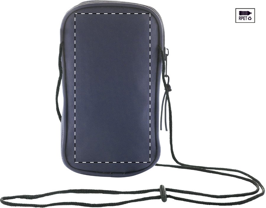 Voděodolná RPET crossbody taška na mobilní telefon s hlavní přihrádkou na zip, přední kapsou a nastavitelnou šňůrkou. Polyester RPET 600D potažený PU, s výrazným štítkem RPET.