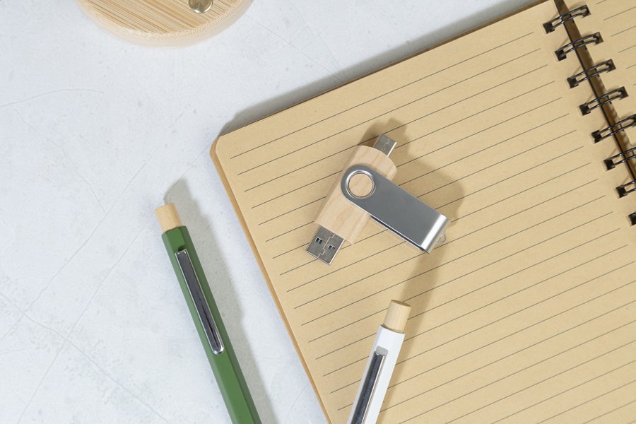 USB flash disk Twist OTG v bambusovém a kovovém pouzdře s pamětí 8/16/32 GB. S připojením USB a USB-C. V kraftové papírové krabici. USB 2.0.