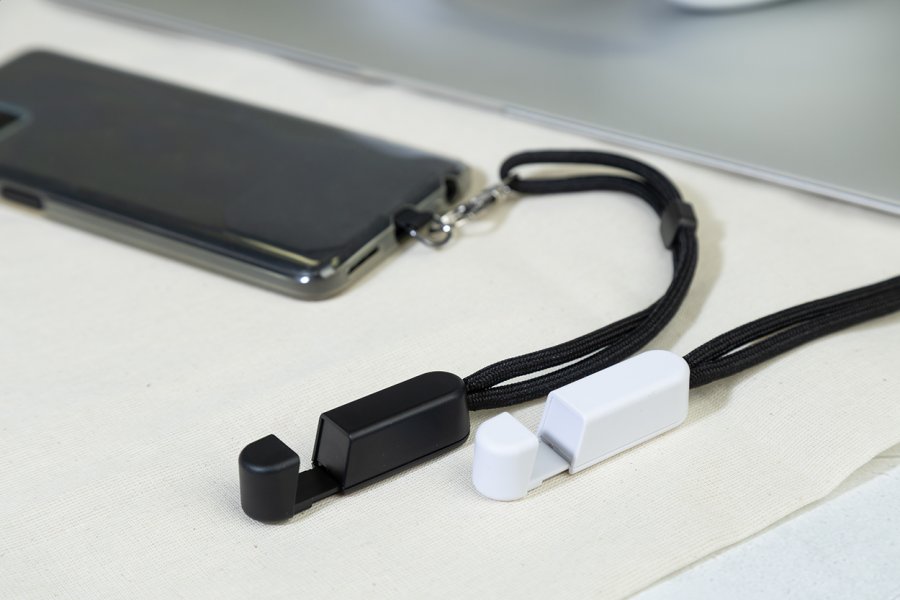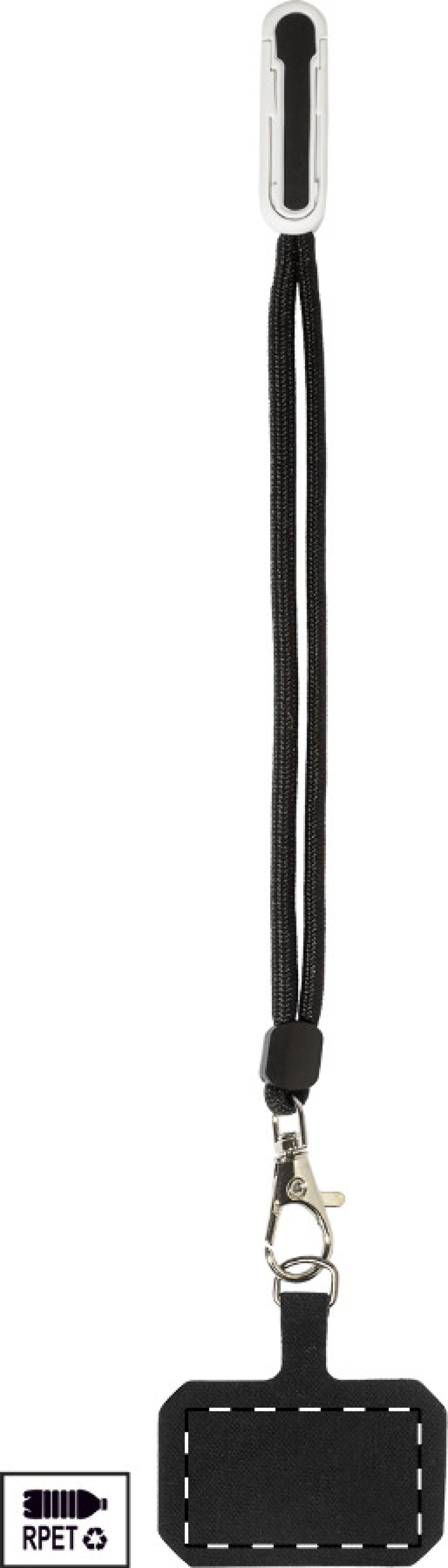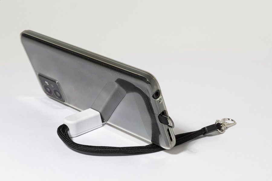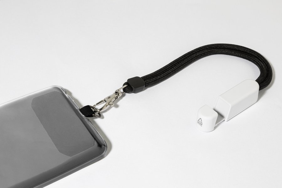 Držák na mobil z RPET s vložkou pro telefon a stojánkem na mobilní telefon z recyklovaného ABS.