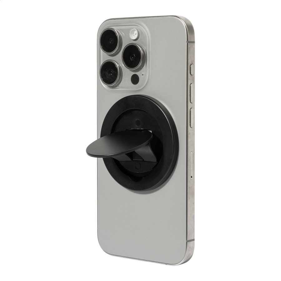 Magnetický držák na mobil z recyklovaného ABS. Včetně samolepicího kovového kroužku pro telefony bez magnetického povrchu.