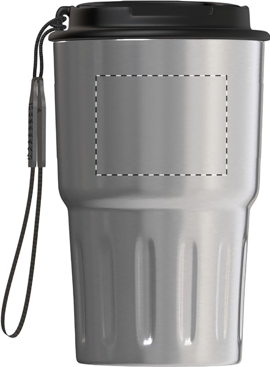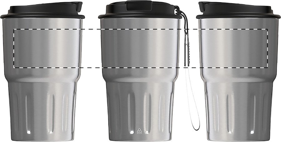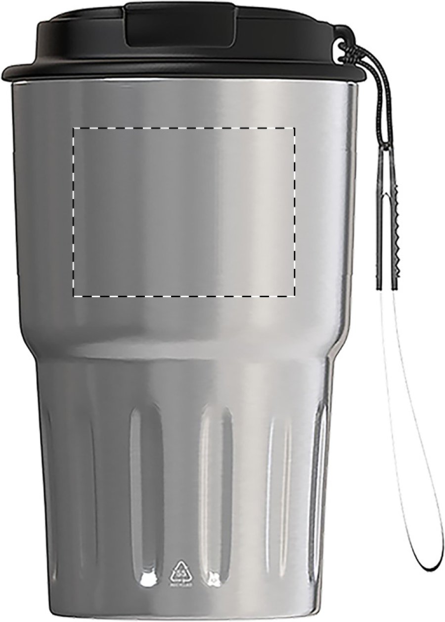 Dvoustěnný termo hrnek z recyklované nerezové oceli s izolačním víčkem z PP. S poutkem z RPET polyesteru. 350 ml.