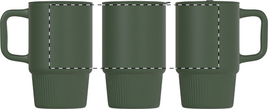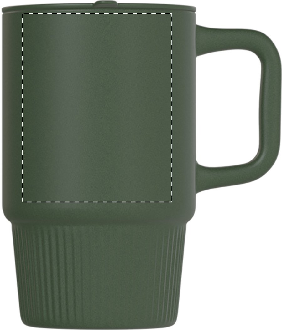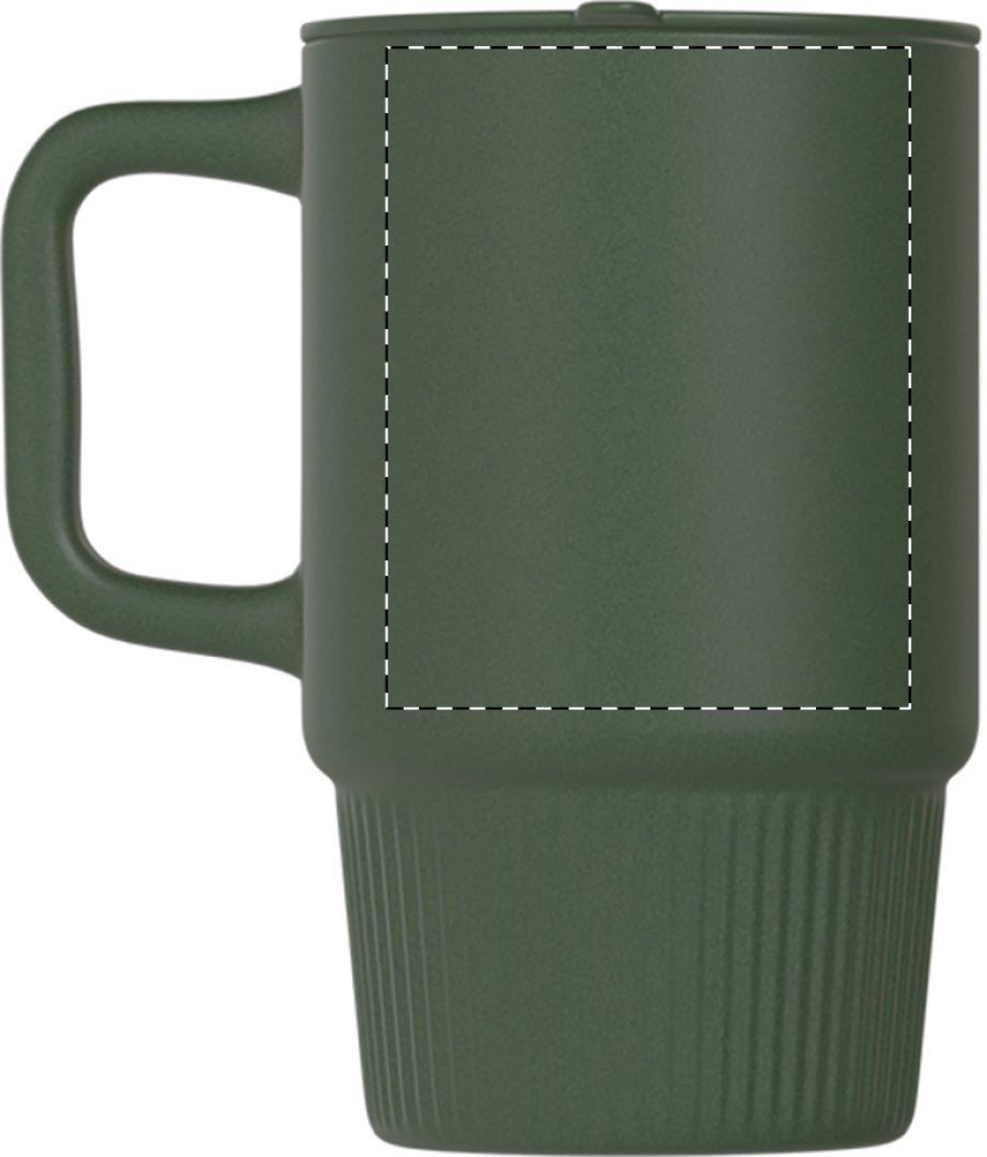Vysoce kvalitní keramický cestovní hrnek s matným vnějším povrchem a plastovým víčkem z polypropylenu. 420 ml.