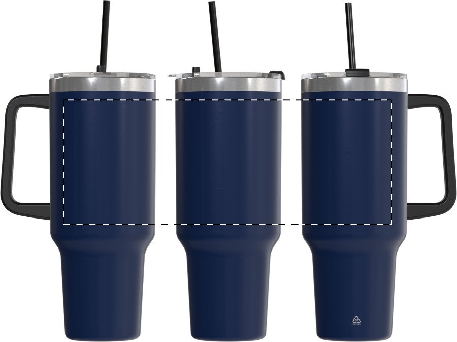 Dvouplášťový vakuově izolovaný termo hrnek z recyklované nerezové oceli s PS víčkem na pití a PP brčkem. 1200 ml.