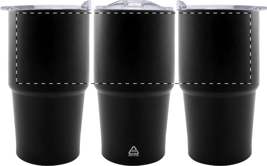 Dvoustěnný vakuově izolovaný termohrnek z recyklované nerezové oceli s víčkem z polystyrenového plastu. 600 ml.