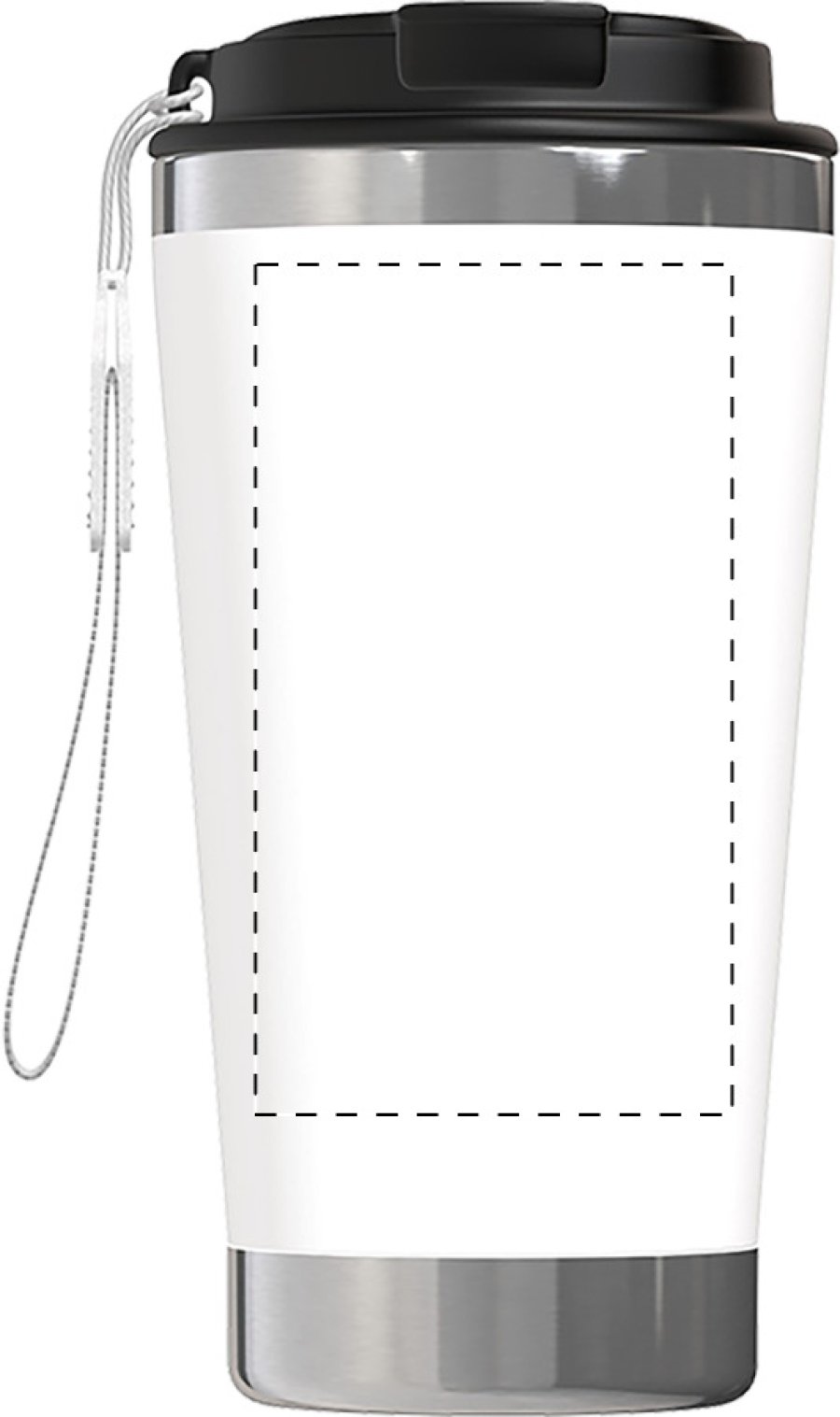 Dvoustěnný termo hrnek z recyklované nerezové oceli s víčkem na pití z PP a páskem na přenášení v odpovídající barvě. 430 ml.