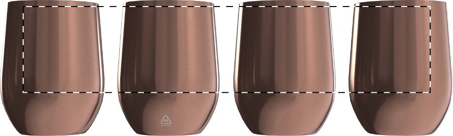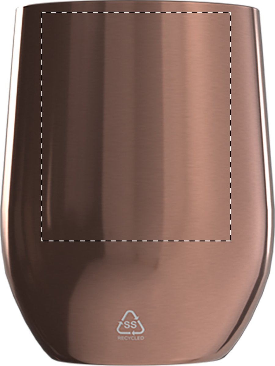 Dvoustěnný termohrnek z recyklované nerezové oceli s vysoce lesklou kovovou povrchovou úpravou a plastovým víčkem. 350 ml.