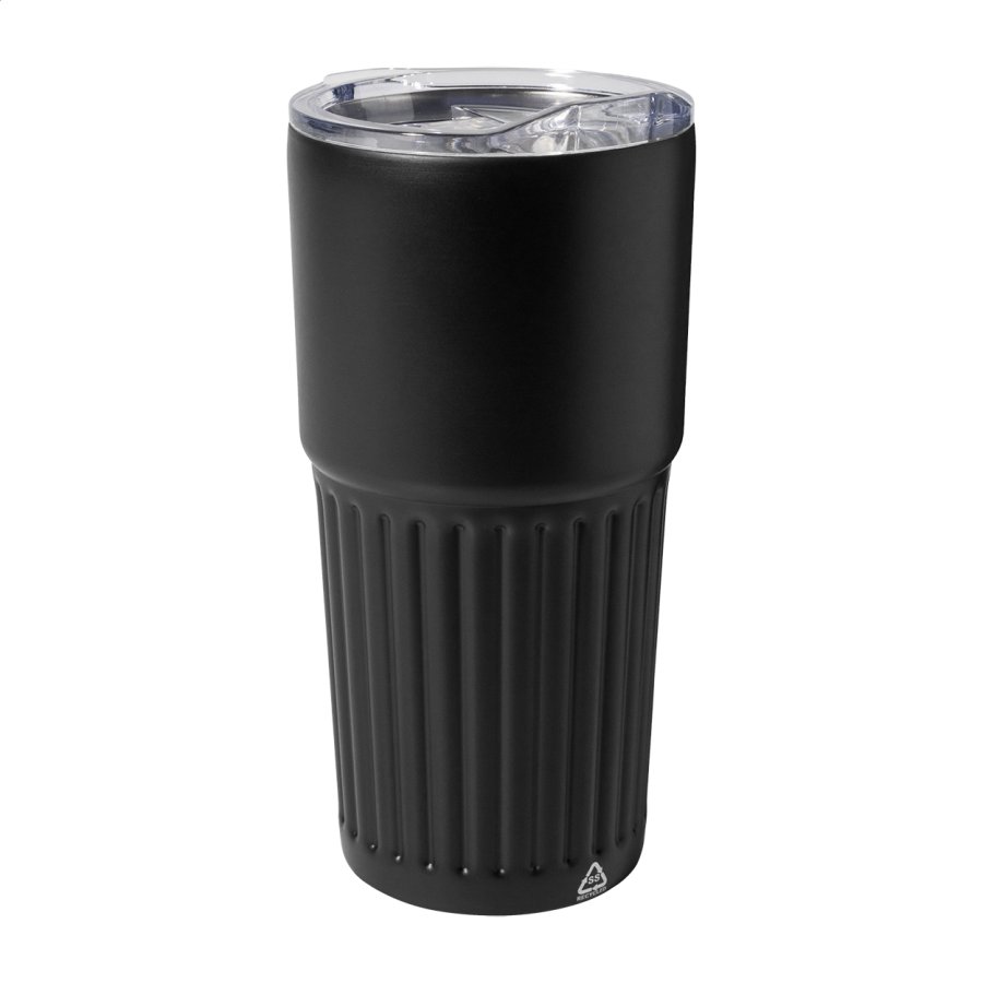 Dvoustěnný termo hrnek z recyklované nerezové oceli s víčkem na pití z ABS plastu. 600 ml.