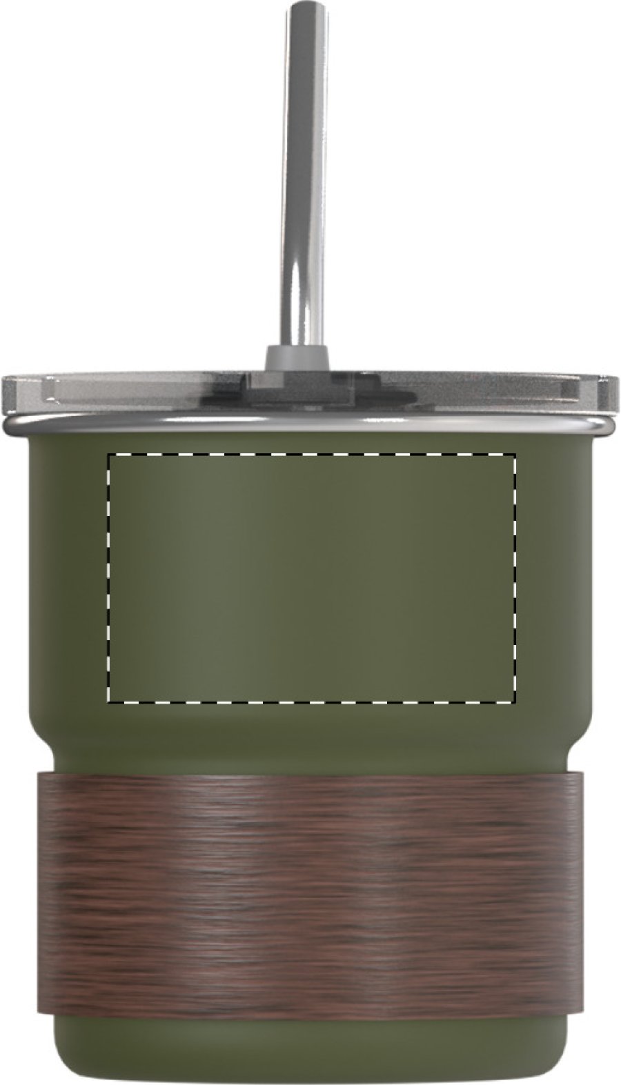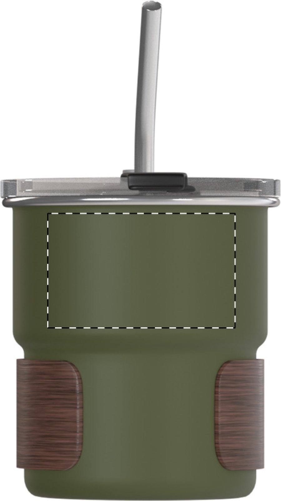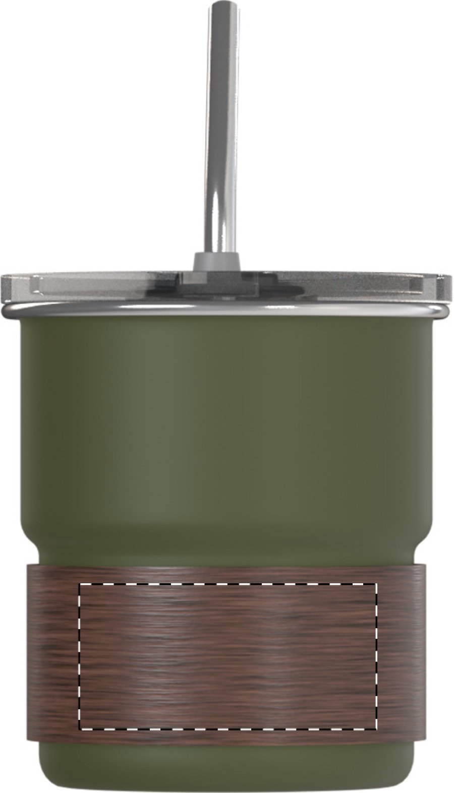 Jednostěnný cestovní hrnek z recyklované nerezové oceli s úchopem z ořechového dřeva, plastovým víčkem a brčkem z recyklované nerezové oceli. 260 ml.