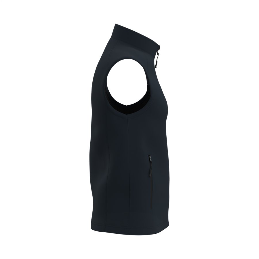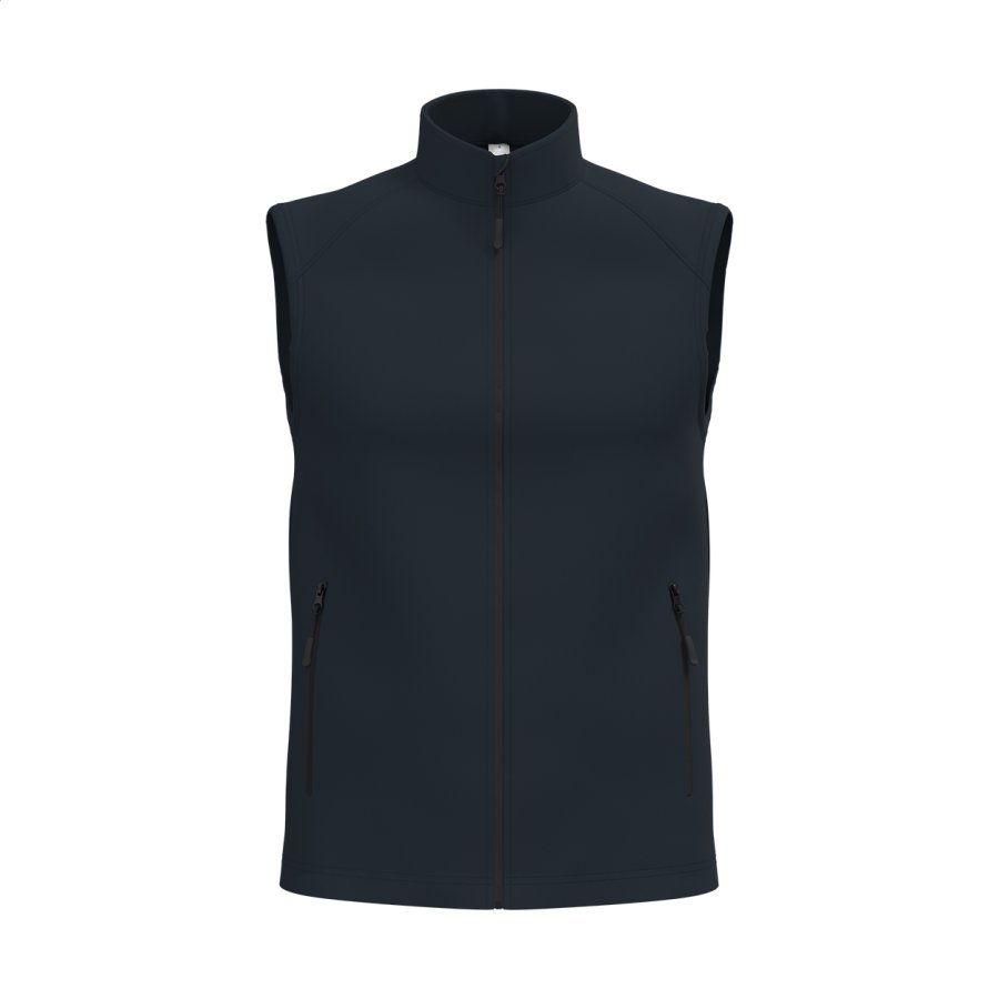 Dvouvrstvá softshellová vesta se zapínáním na zip a bočními kapsami na zip. S kontrastními zipy. Voděodolná tkanina. Vnější strana: 95% polyester a 5% elastan. Vnitřní strana: 100% polyesterový mikro polar fleece. Značka iDealBasic.